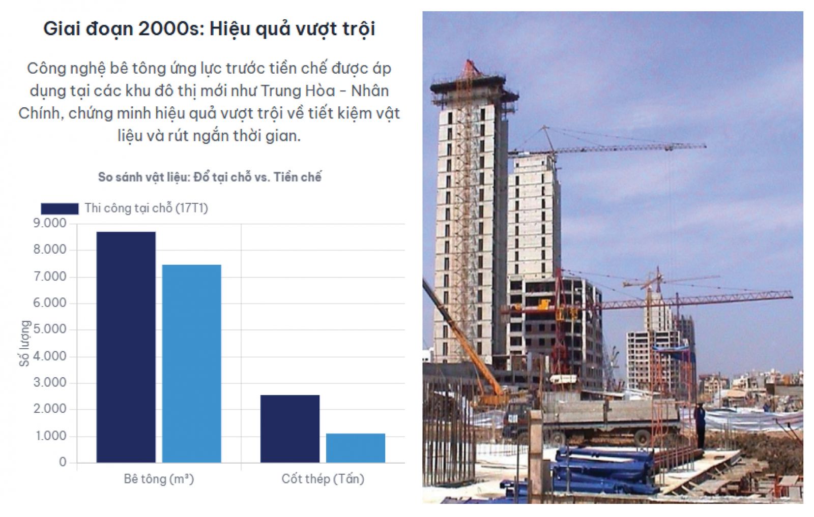 Sự trở lại của công nghệ lắp ghép vào những năm 2000, đặc biệt là thông qua việc ứng dụng bê tông ứng lực trước tiền chế, đánh dấu một cách tiếp cận khác biệt và trưởng thành hơn so với giai đoạn thập niên 1970. Công nghệ lắp ghép được chuyển giao từ các quốc gia có nền công nghiệp xây dựng phát triển (Pháp, Bỉ), đi kèm với các quy trình kiểm soát chất lượng được chuẩn hóa (ISO 9001). Sự thành công của các dự án 17T, 18T, 25T và 34T ở Khu đô thị Trung Hòa – Nhân Chính (Hà Nội) là minh chứng cho việc khi được triển khai một cách khoa học, bài bản và có sự đầu tư đúng mức, công nghệ lắp ghép thực sự mang lại hiệu quả vượt trội.