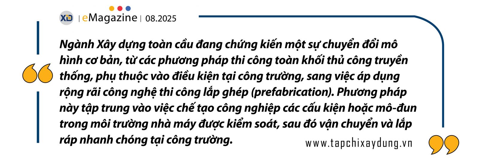 Mục tiêu chính của sự chuyển dịch này là tăng tốc độ thi công, giảm chi phí, nâng cao chất lượng sản phẩm, cải thiện an toàn lao động, và giảm thiểu tác động của các yếu tố bên ngoài như thời tiết, đồng thời giải quyết vấn đề thiếu hụt lao động lành nghề.