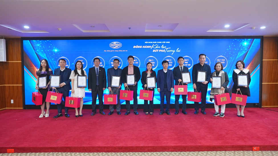 Tại sự kiện, Chủ tịch HĐQT Nguyễn Hữu Tới và các lãnh đạo Tổng công ty cũng đã trân trọng trao tặng ‘Chứng nhận đồng hành’ và món quà lưu niệm đến các nhà cung cấp đã luôn đồng hành cùng VINACONEX. Món quà lưu niệm có hình ảnh con thuyền no gió vươn mình ra khơi mang theo ý nghĩa sâu sắc: tượng trưng cho sự hợp tác thuận buồm xuôi gió, cùng nhau vượt sóng, hướng đến những chân trời mới. Đây không chỉ là sự ghi nhận những đóng góp trong quá khứ, mà còn là cam kết cho hành trình đồng hành lâu dài, cùng xây dựng và phát triển tương lai thịnh vượng giữa VINACONEX và các đối tác.