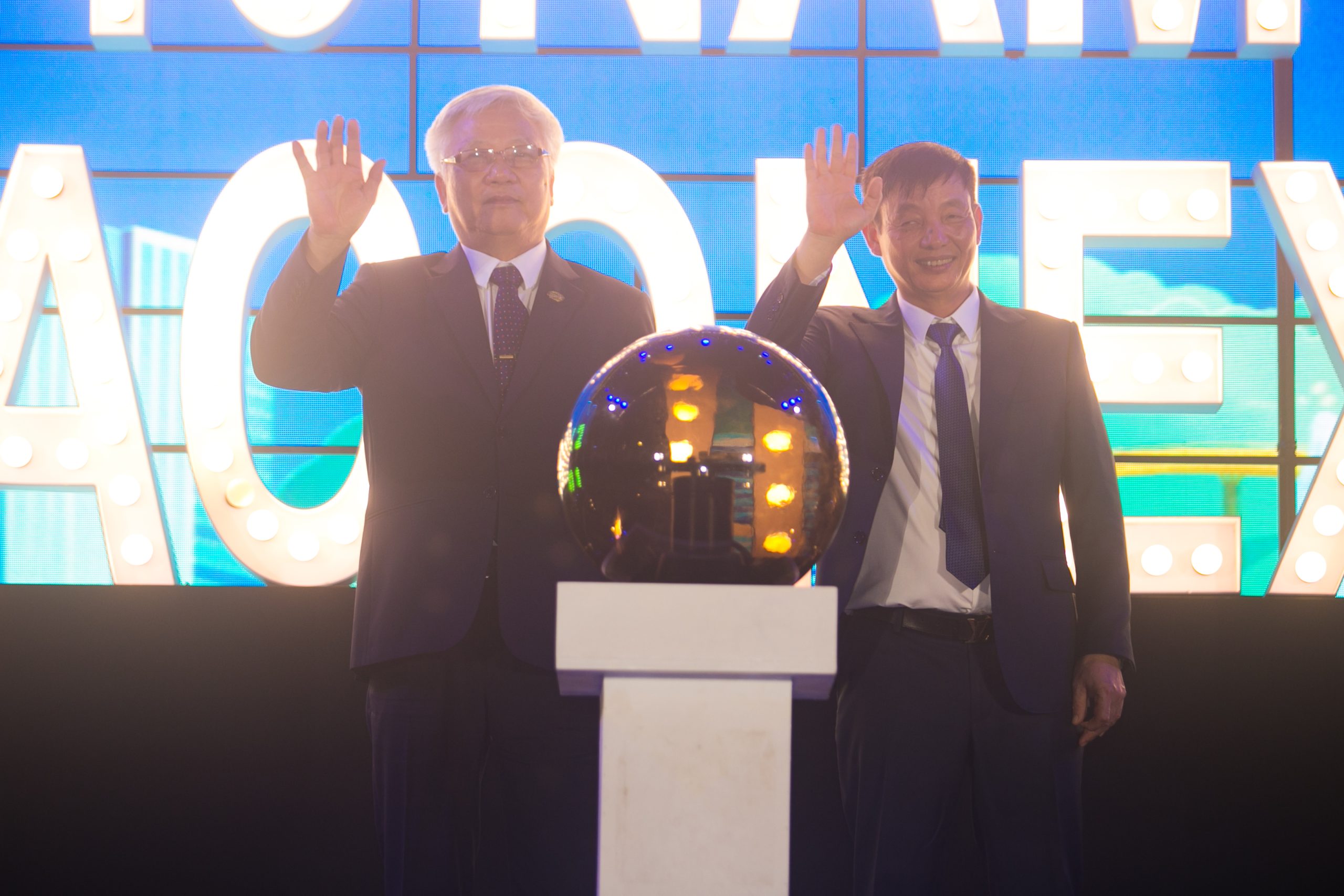Chủ tịch HĐQT TCT Vinaconex Đào Ngọc Thanh và Chủ tịch HĐQT Vinaconex 25 Nguyễn Xuân Đông thực hiện nghi thức – đánh dấu thời khắc Công ty chính thức bước sang “tuổi 40” xây dựng và phát triển bền vững