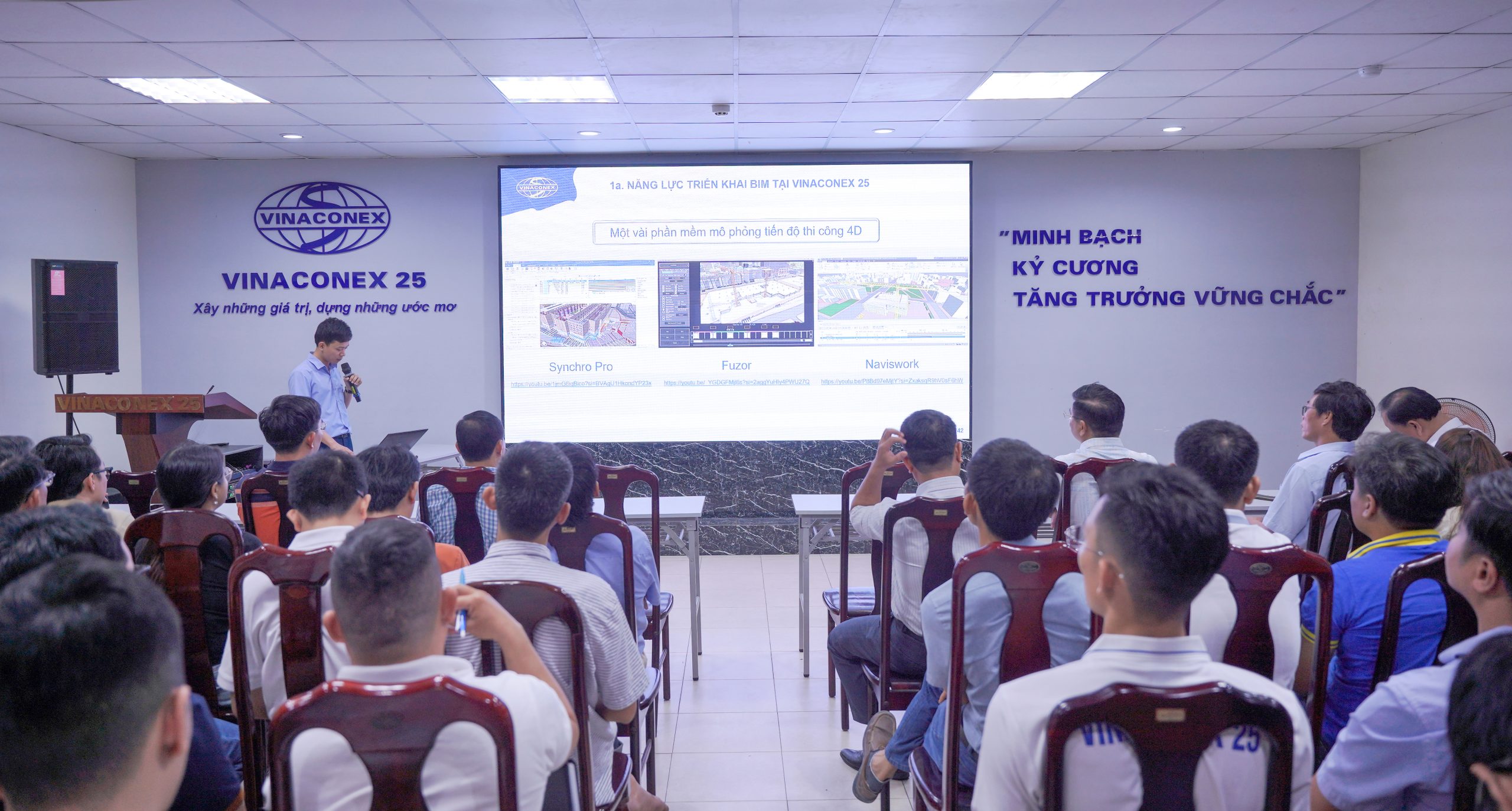 Vinaconex 25 has so far developed many diverse training courses to actualize these above targets, from courses to improve the professional skills coached by the experts in professional aspects to internal workshop/seminars hold and guided by Department Manager for internal discussions as well as sharing the construction experiences.